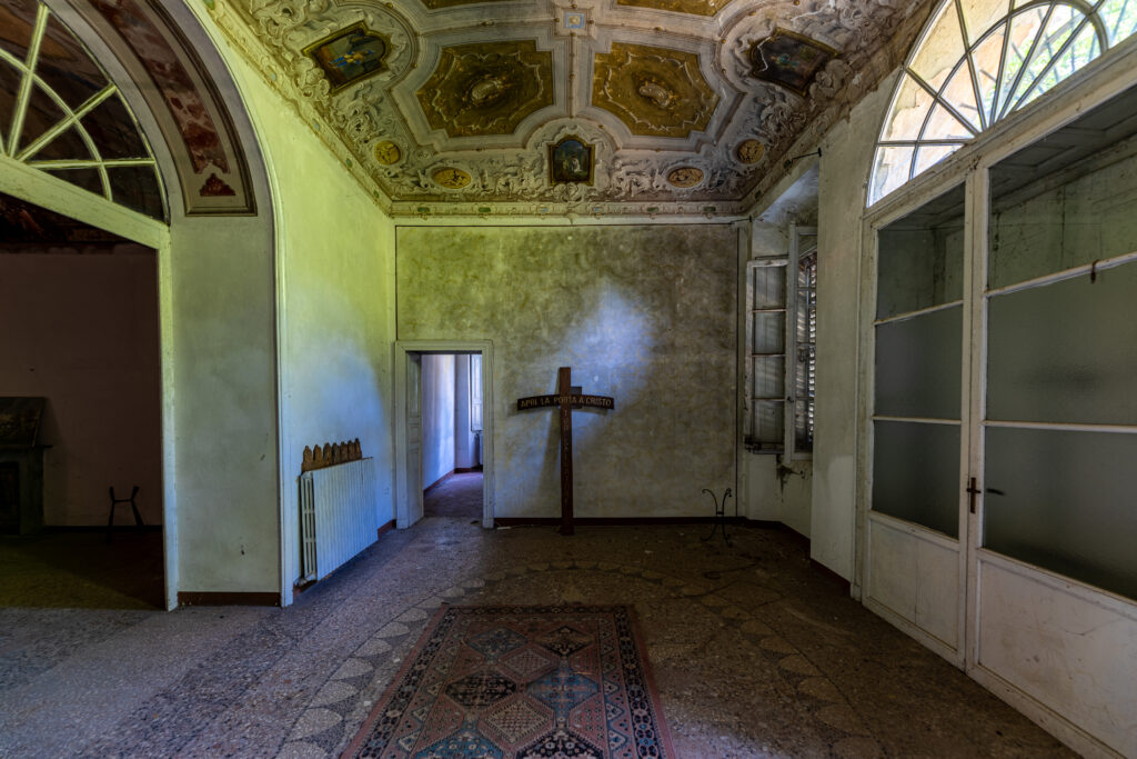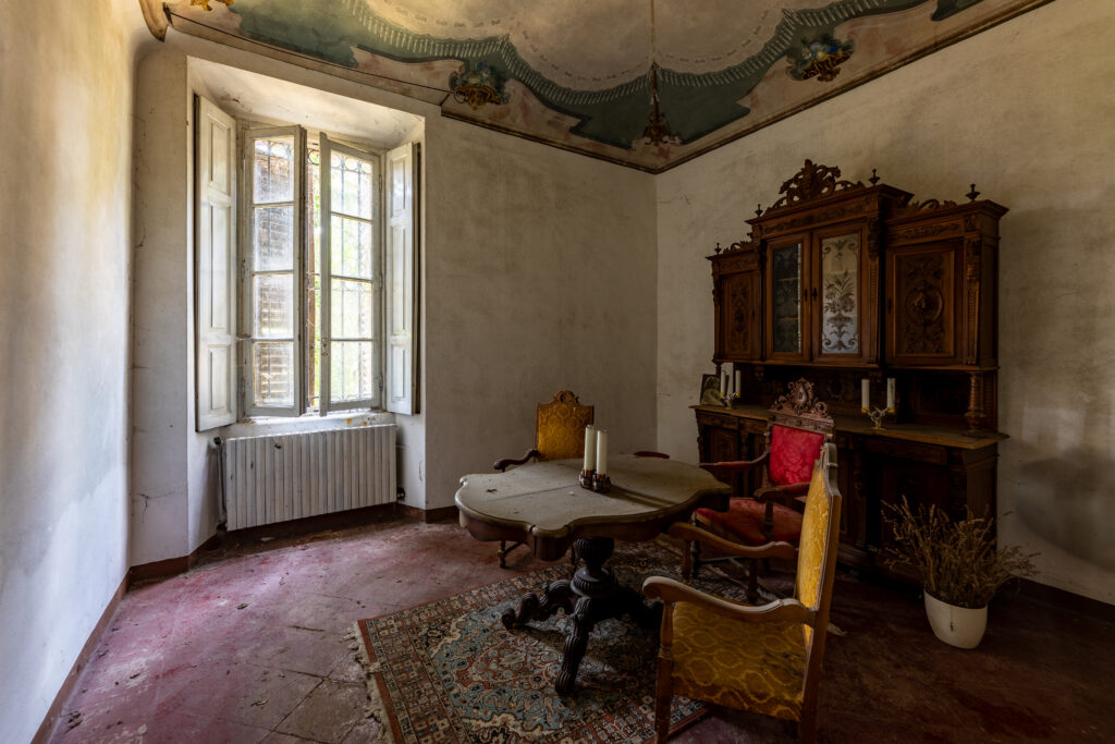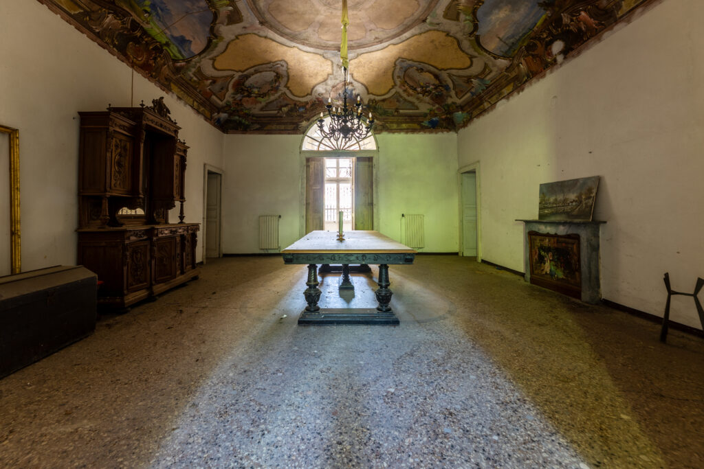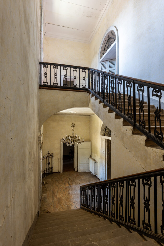 Guardandola dall’esterno, è difficile immaginare quanto possa essere bella e ricca di fascino questa villa… Lo scalone candido, illuminato da un grande e raffinato lampadario, conduce ai saloni affrescati, oggi vuoti, ma ancora capaci di raccontare storie. La luce che entra dalle finestre chiuse illumina delicatamente i pochi oggetti rimasti e mette in risalto i dettagli preziosi del pavimento. Proprio come certe persone, che all’apparenza sembrano chiuse in sé stesse, silenziose e magari anche un po’ austere, ma che in realtà custodiscono una bellezza e un amore nascosto, pronti a essere donati senza più alcuna riserva a chi saprà riconoscerli.