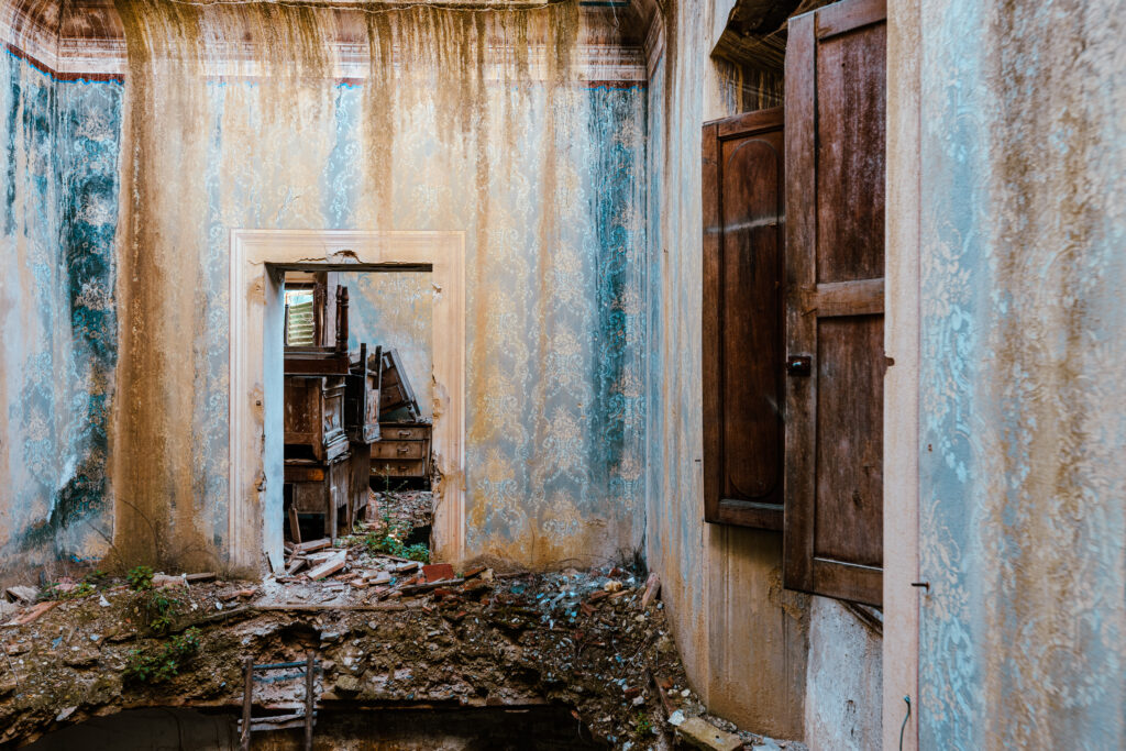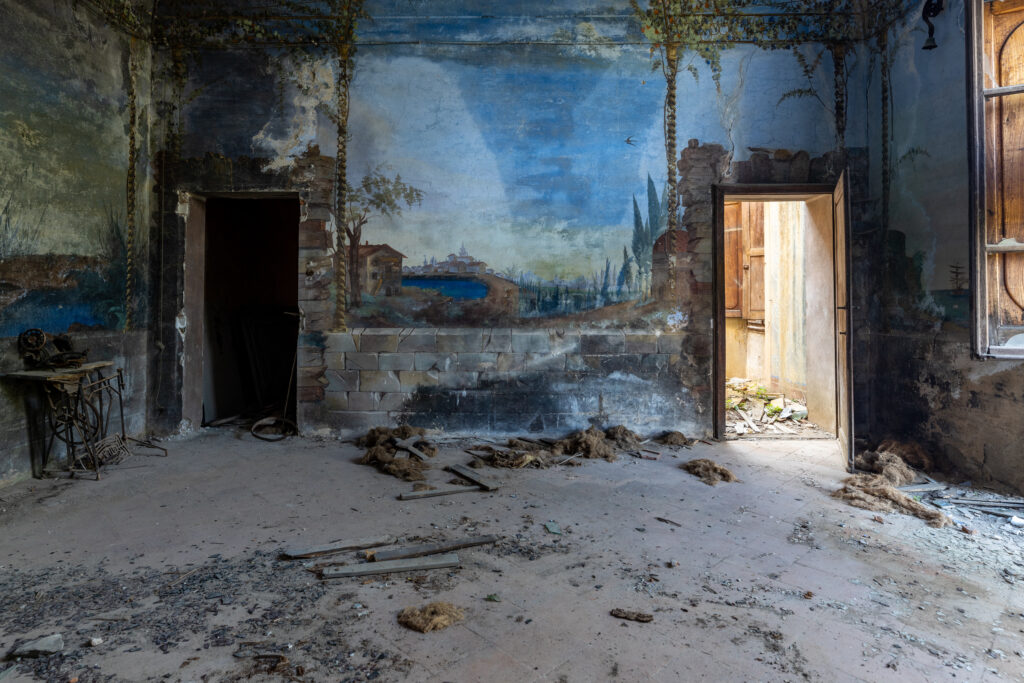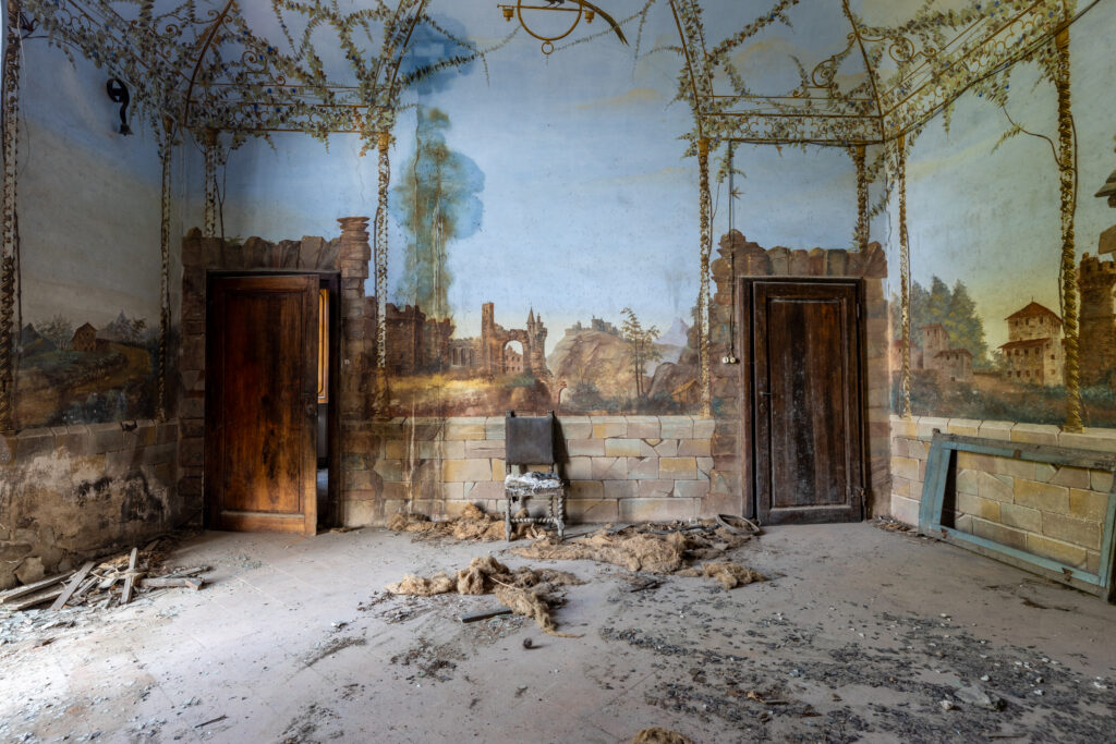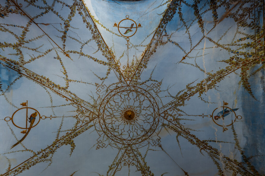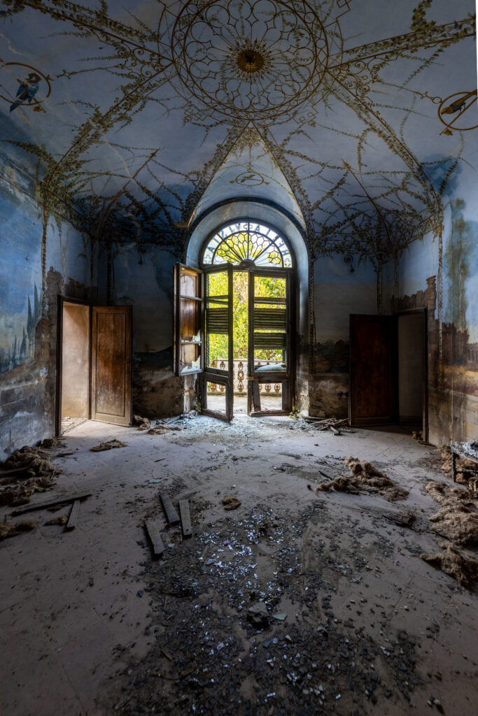 Perché? Perché è stato davvero un sogno poterla visitare, trovarmi lì con la testa rivolta verso l’alto, a contemplare quel meraviglioso soffitto decorato che sembra una vera e propria serra esotica, con piante rigogliose e i famosi “pappagalli”. Quei famosi pappagalli che hanno dato il nome a questo luogo e che dominano la stanza dall’alto, sopra l’ingresso, rendendo ancora più particolare questo luogo. Questa villa infatti è stata una vera e propria icona nel mondo dell’urbex, un luogo che ho desiderato con tutto il cuore e che ho custodito gelosamente per lungo tempo dentro di me.
